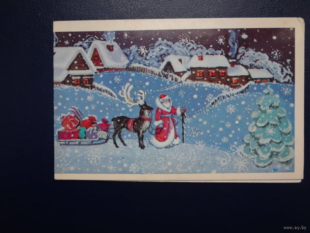 С Новым годом! 1983 г. Дед Мороз, олень, подарки. двойная. подписанная.