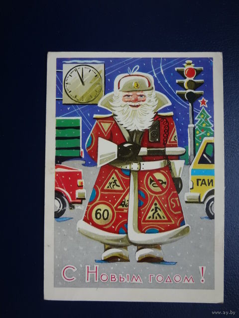 С Новым годом! 1983 г. Дед Мороз - регулировщик. подписанная.