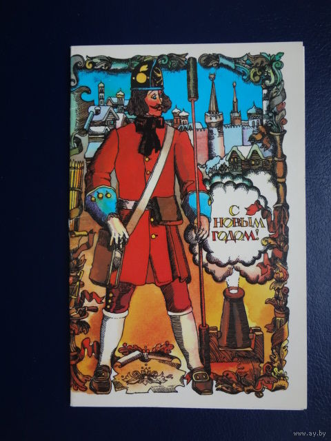 С Новым годом! 1983 г. Фейерверщик. двойная. чистая.