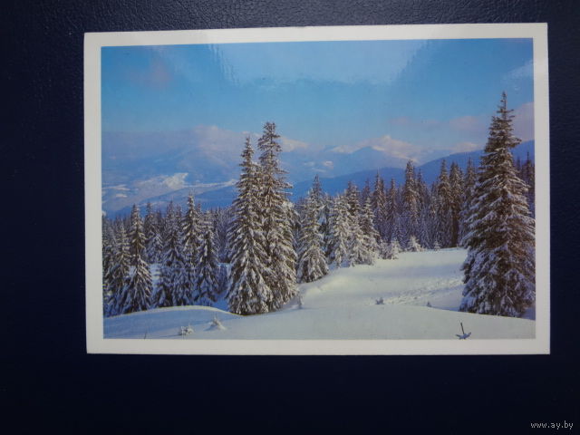 С Новым годом! 1983 г. Горы, ели, снег. подписанная.
