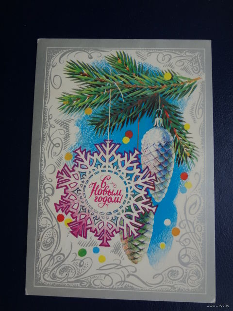 С Новым годом! 1983 г. Шишки, снежинка. подписанная.