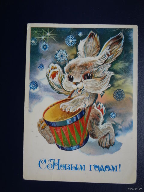 С Новым годом! 1983 г. Зайчик, барабан. напечатано поздравление.
