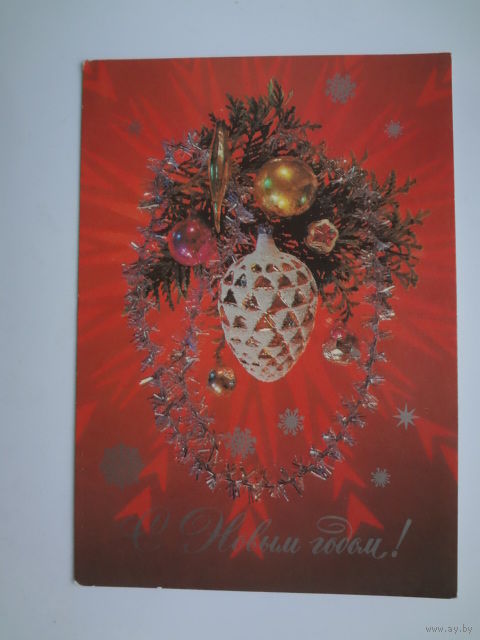 С Новым годом! 1984 г. Игрушки, снежинки. подписанная.