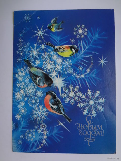 С Новым годом! 1984 г. Птицы, снежинки. подписанная.