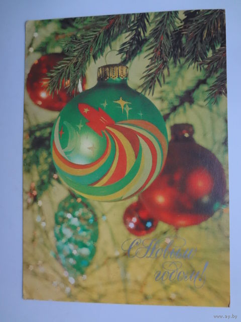 С Новым годом! 1984 г. Шары, ракета. подписанная.