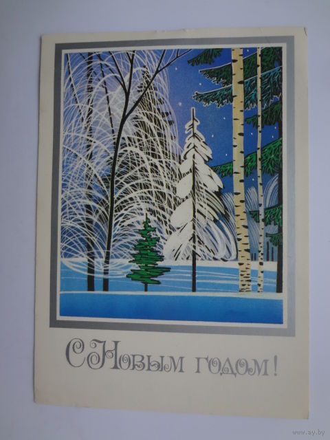 С Новым годом! 1984 г. Зимний лес. подписанная.
