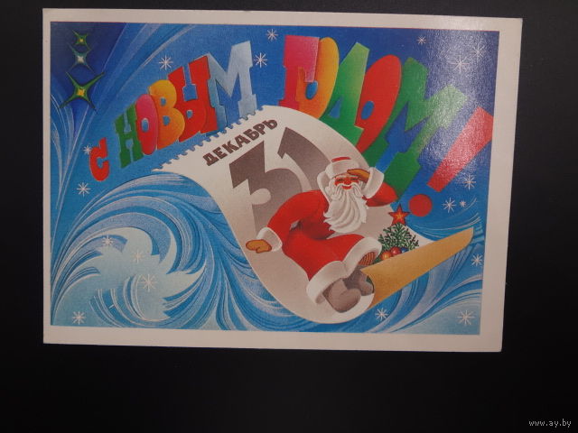 С Новым годом! 1985 г. Дед Мороз на листке календаря. чистая.