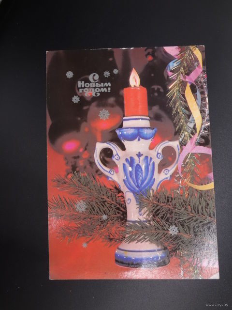 С Новым годом! 1985 г. Подсвечник, свеча, снежинки. чистая.