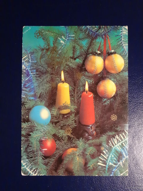 С Новым годом! 1985 г. Шары, свечи. подписанная.