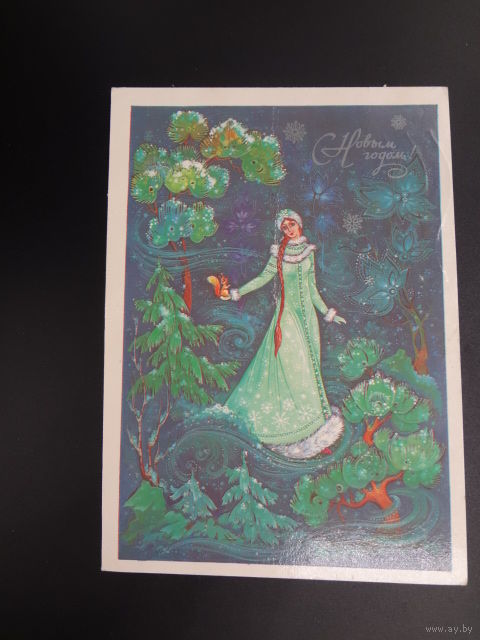 С Новым годом! 1985 г. Снегурочка, белочка. подписанная.