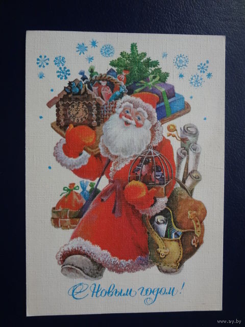 С Новым годом! 1986 г. Дед Мороз с подарками. подписанная.