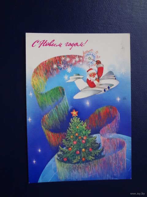 С Новым годом! 1986 г. Дед Мороз, самолет, ёлка. подписанная.