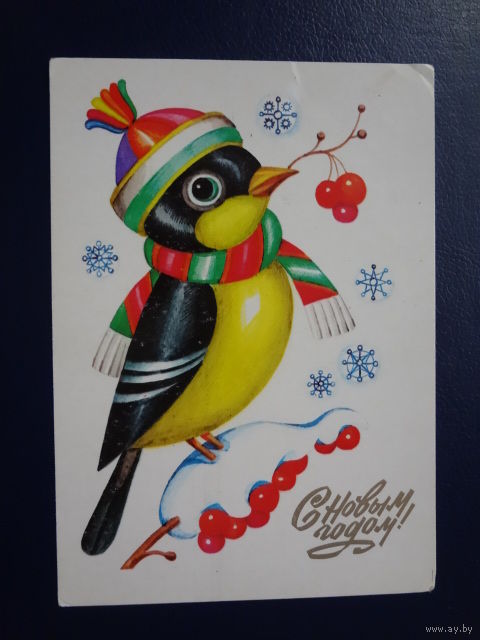 С Новым годом! 1986 г. Синица, рябина. чистая.