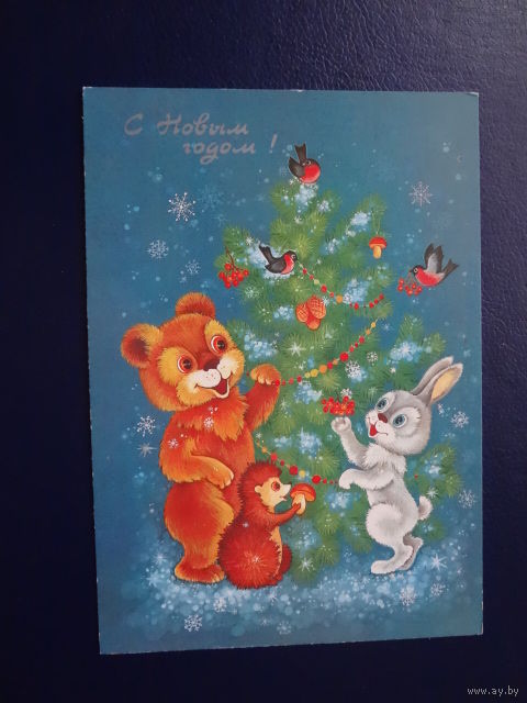 С Новым годом! 1986 г. Звери, птицы наряжают ёлку. чистая.