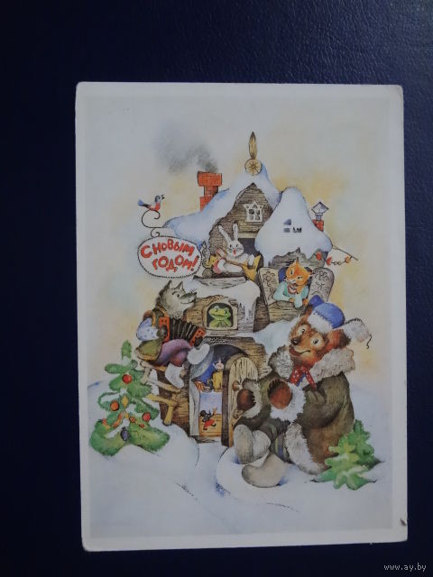 С Новым годом! 1986 г. Звери в теремке. чистая.