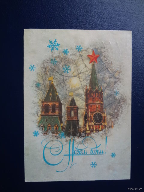 С Новым годом! 1987 г. Башни Кремля. подписанная.