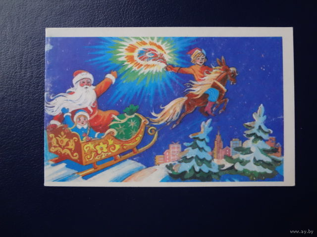 С Новым годом! 1987 г. Дед Мороз, Снегурочка, Иван, перо жар-птицы. двойная. чистая.