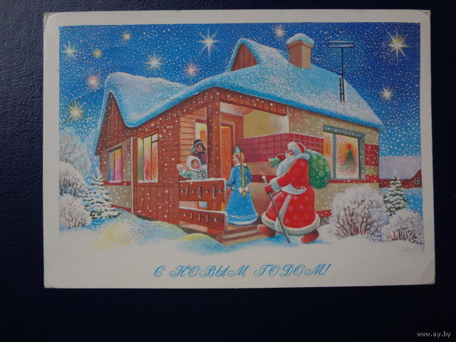 С Новым годом! 1987 г. Дед Мороз, Снегурочка входят в дом. подписанная.