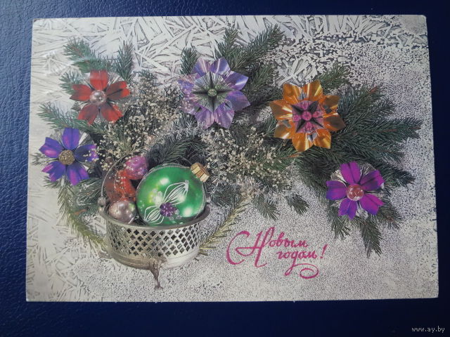С Новым годом! 1987 г. Корзинка, игрушки. подписанная.