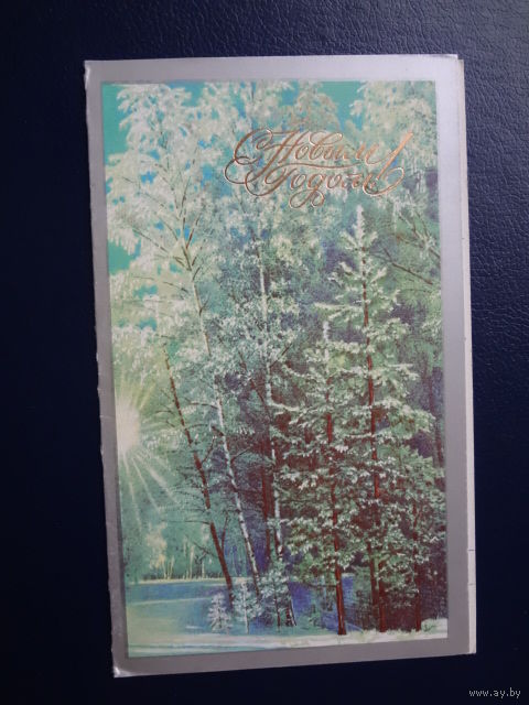 С Новым годом! 1987 г. Лес, солнце. двойная. подписанная.
