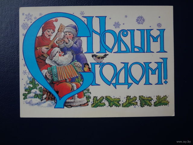 С Новым годом! 1987 г. Трио музыкантов: Дед Мороз, Снегурочка, Мальчик Новый год. каракули.
