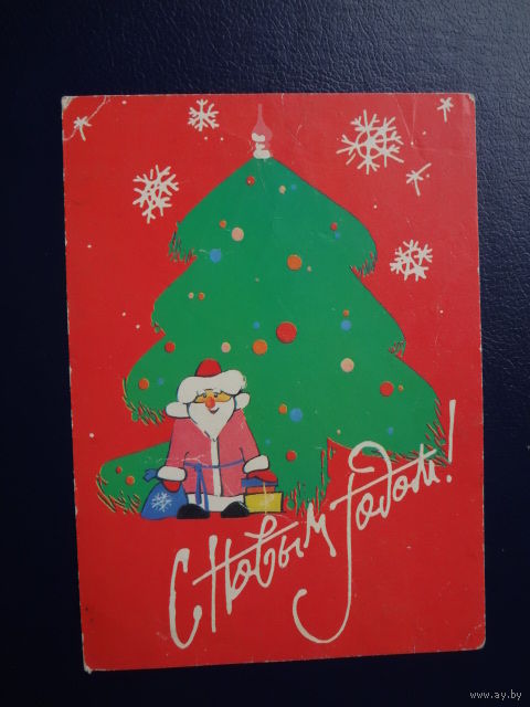 С Новым годом! 1987 г. Ёлка, Дед Мороз с подарками. подписанная.