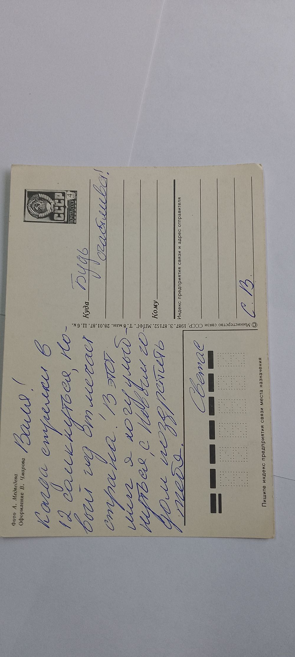 С новым годом! 1987г.подписана