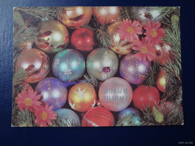 С Новым годом! 1990 г. Много шаров. подписанная.