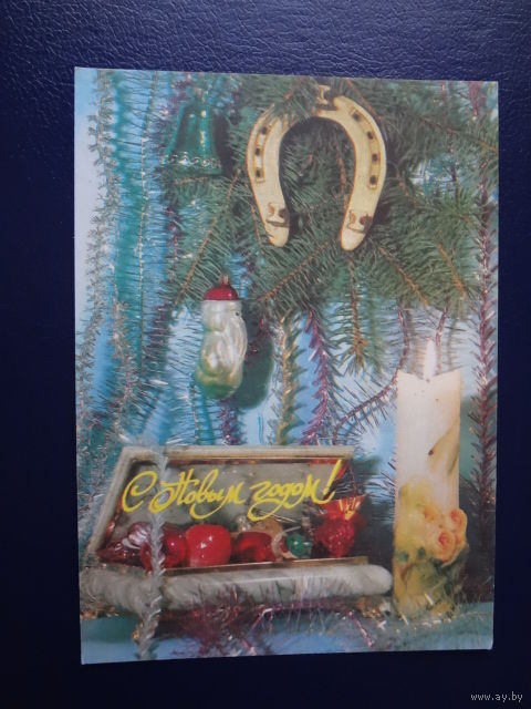 С Новым годом! 1992 г. Свеча, подкова, игрушки. чистая.