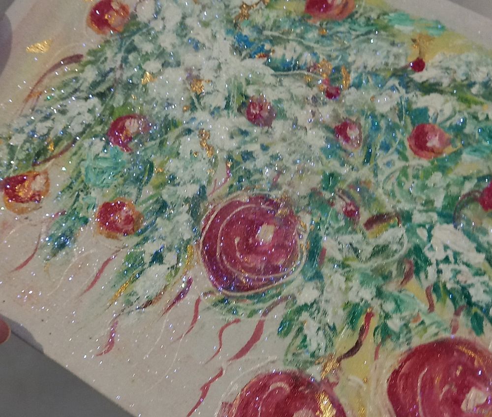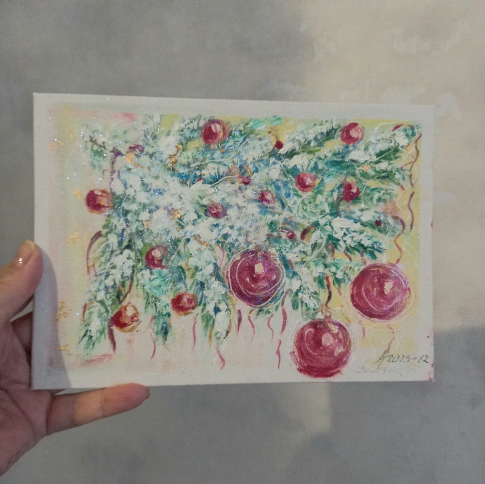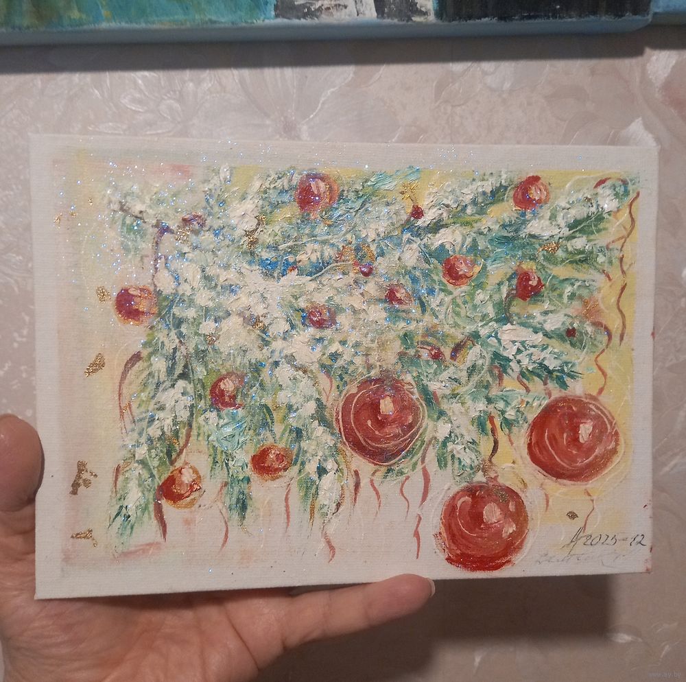 Открытка С Новым Годом/холст на мдф/21×15/масло