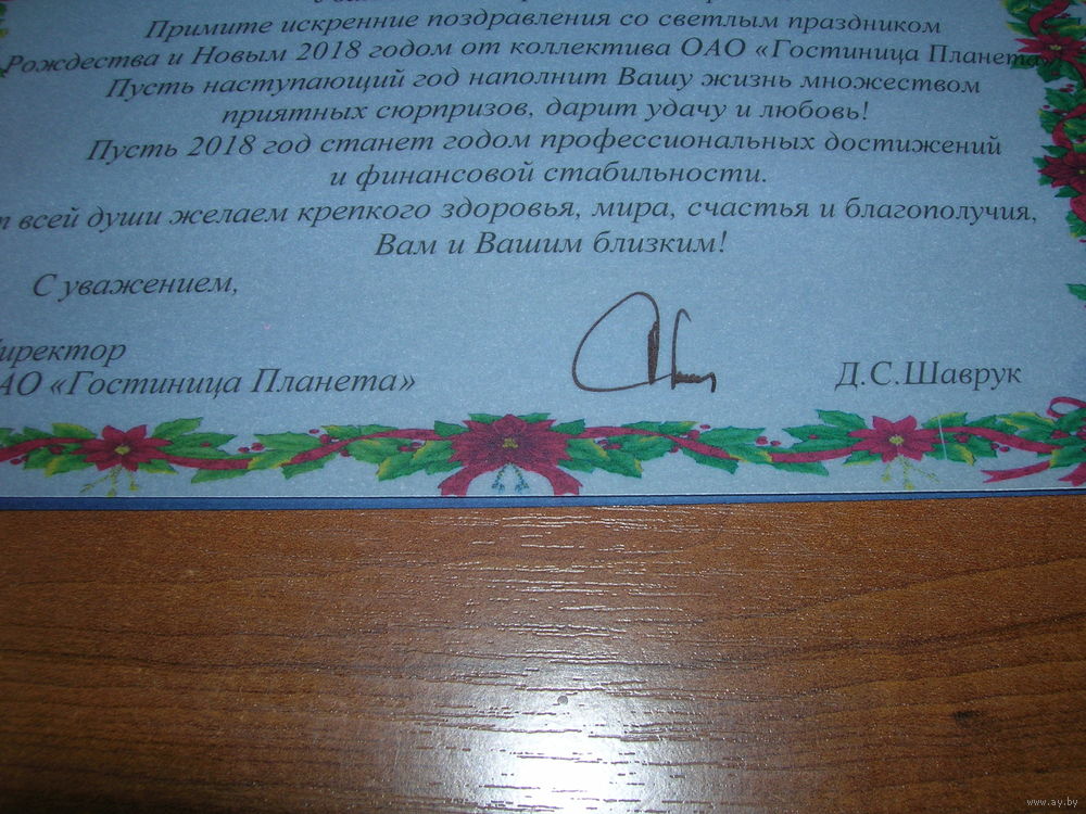 С Новым годом. Беларусь 2018 год Минск гостиница Планета двойная подписана Автограф директора