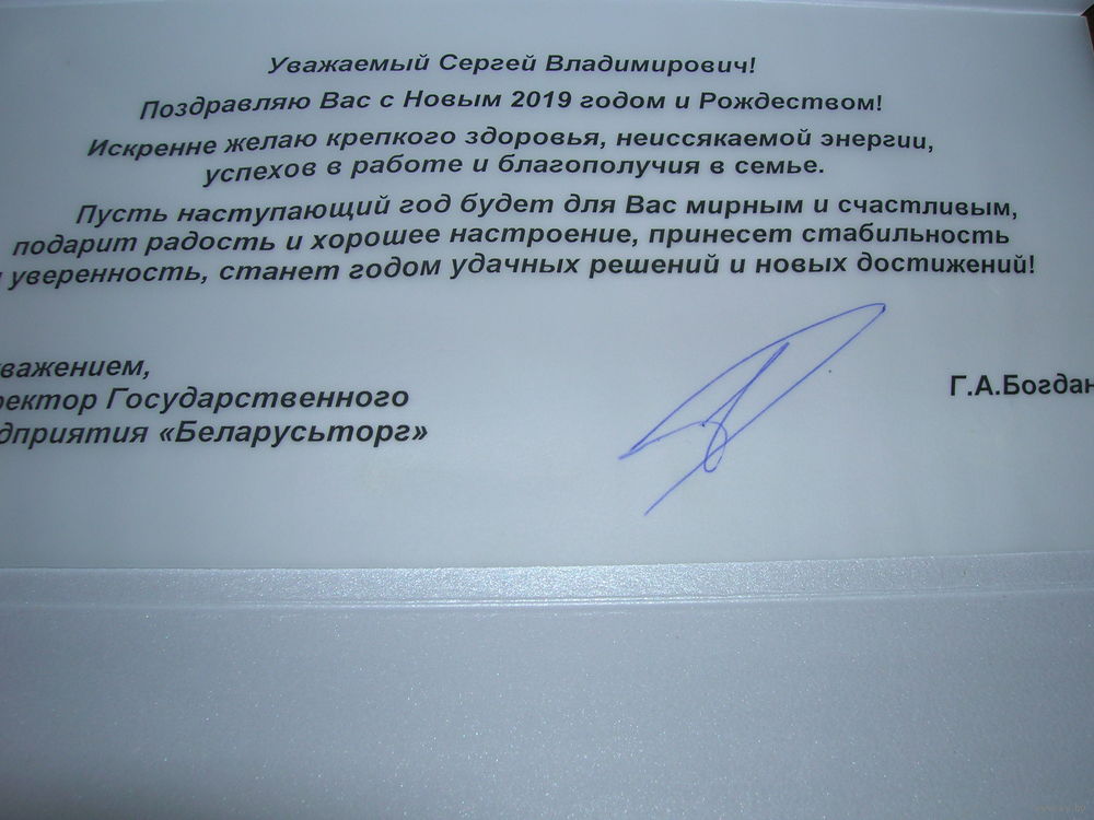 С Новым годом. Беларусь 2019 год Беларусьторг двойная подписана Автограф директора
