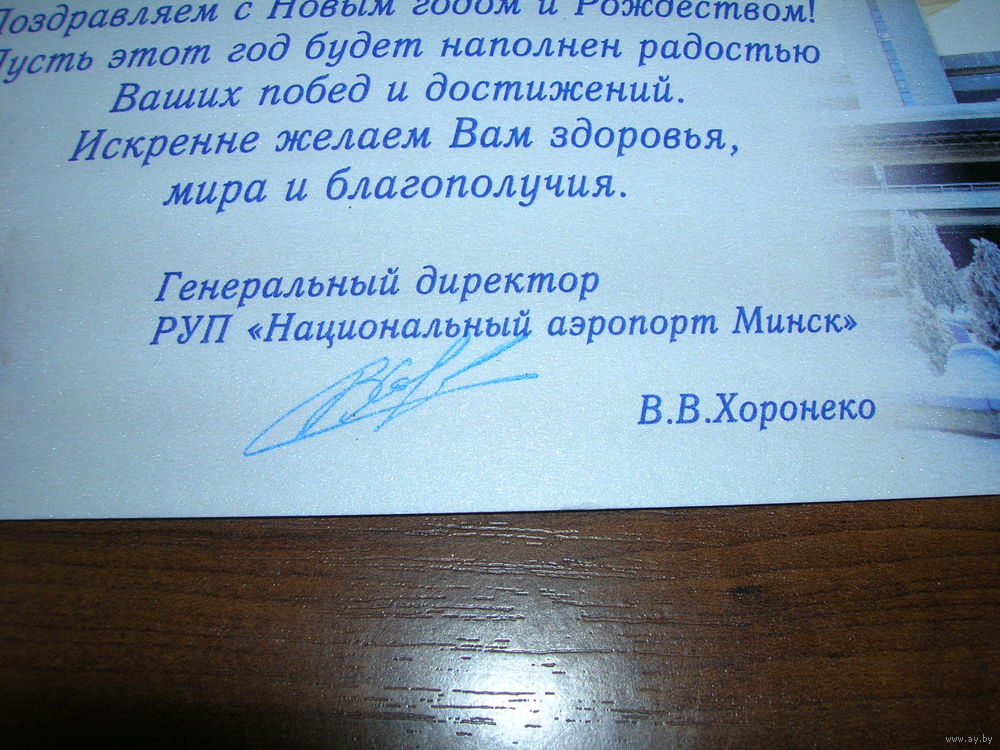 С Новым годом. Беларусь 2024 год Национальный аэропорт Минск двойная подписана Автограф генерального директора