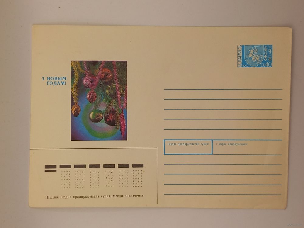 С Новым Годом! Белорусский конверт. Костенко 1992 г. Чистый.