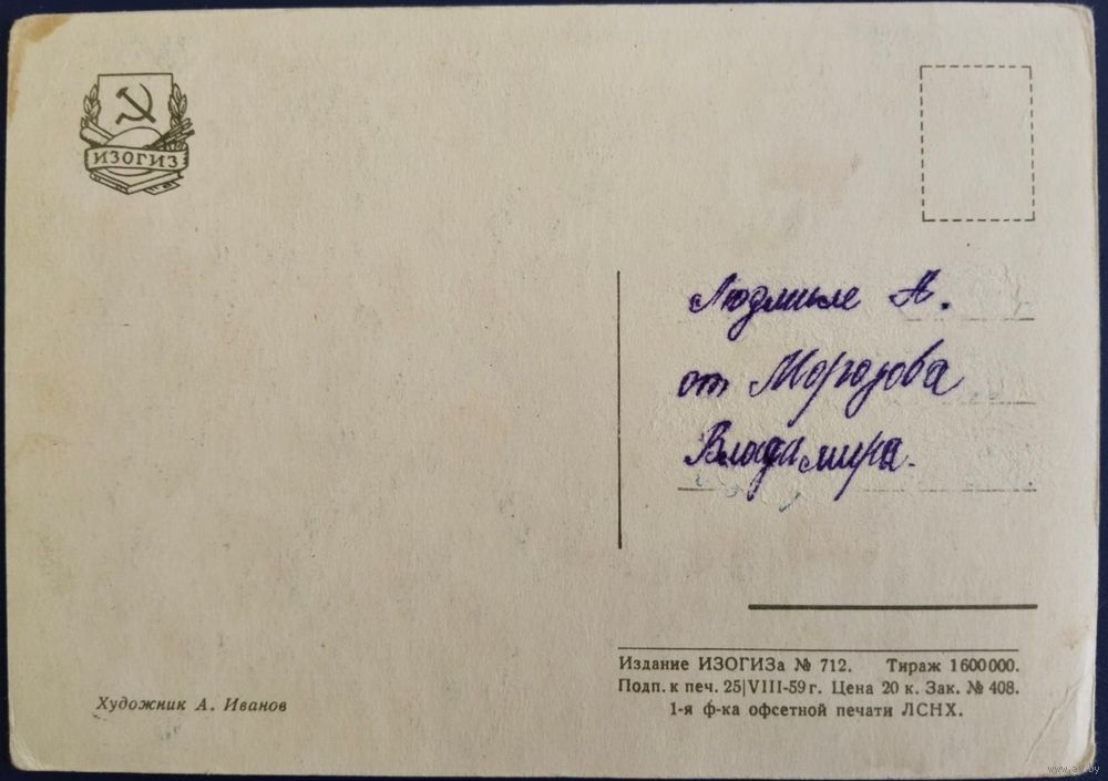 Открытка в "хорошем с минусом" состоянии.