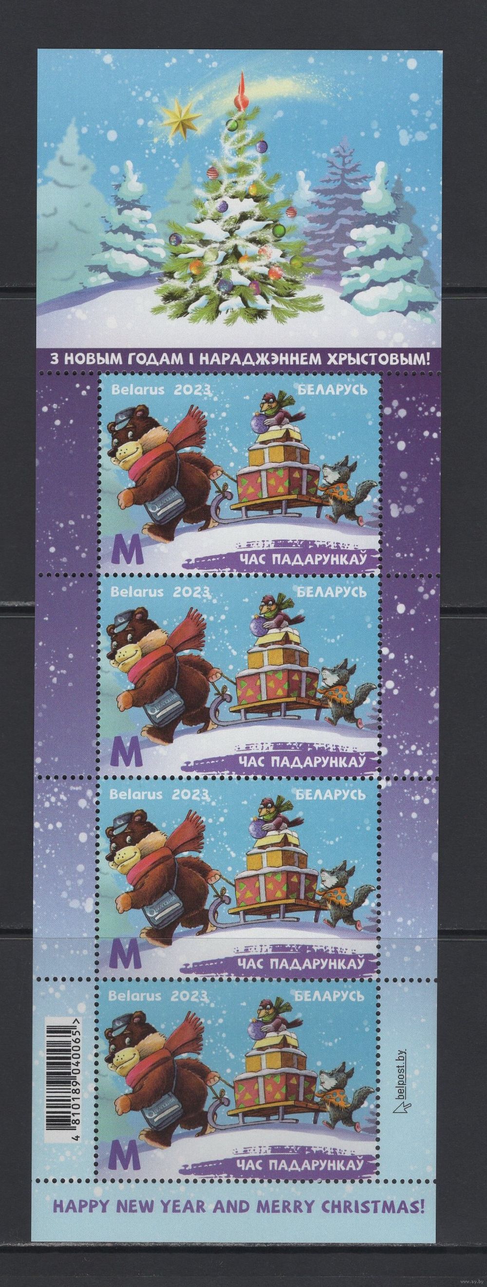 С Новым годом и Рождеством Христовым! Беларусь 2023 Малый лист