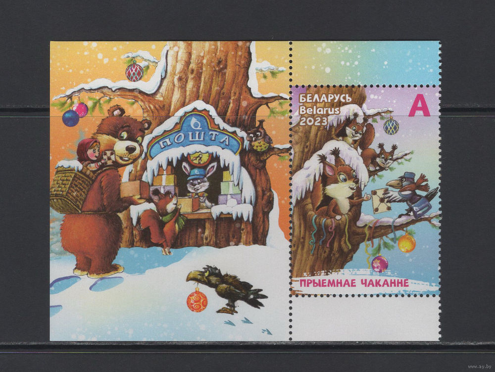 С Новым годом и Рождеством Христовым! Беларусь 2023 марка художественная с купоном