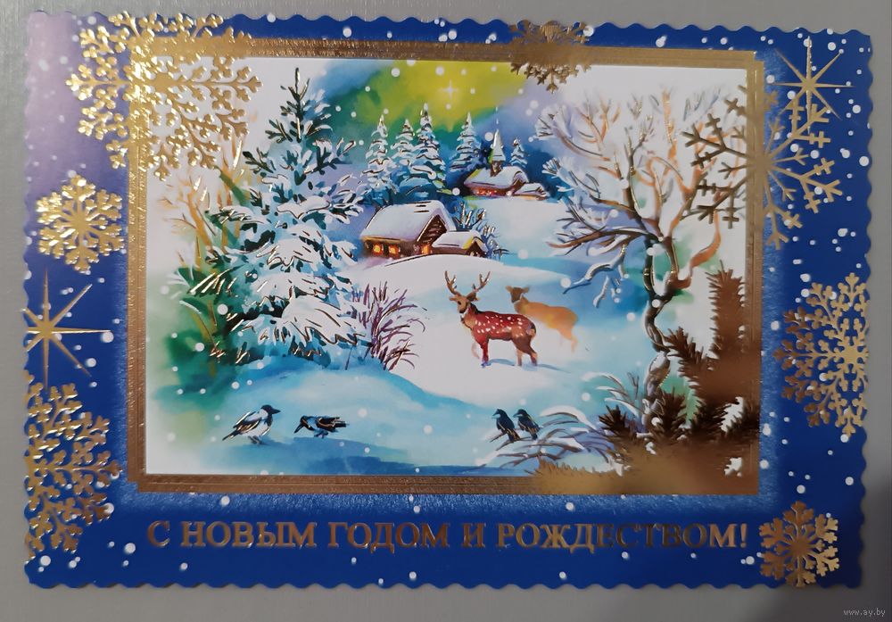 С Новым годом и Рождеством! Открытка с пожеланиями