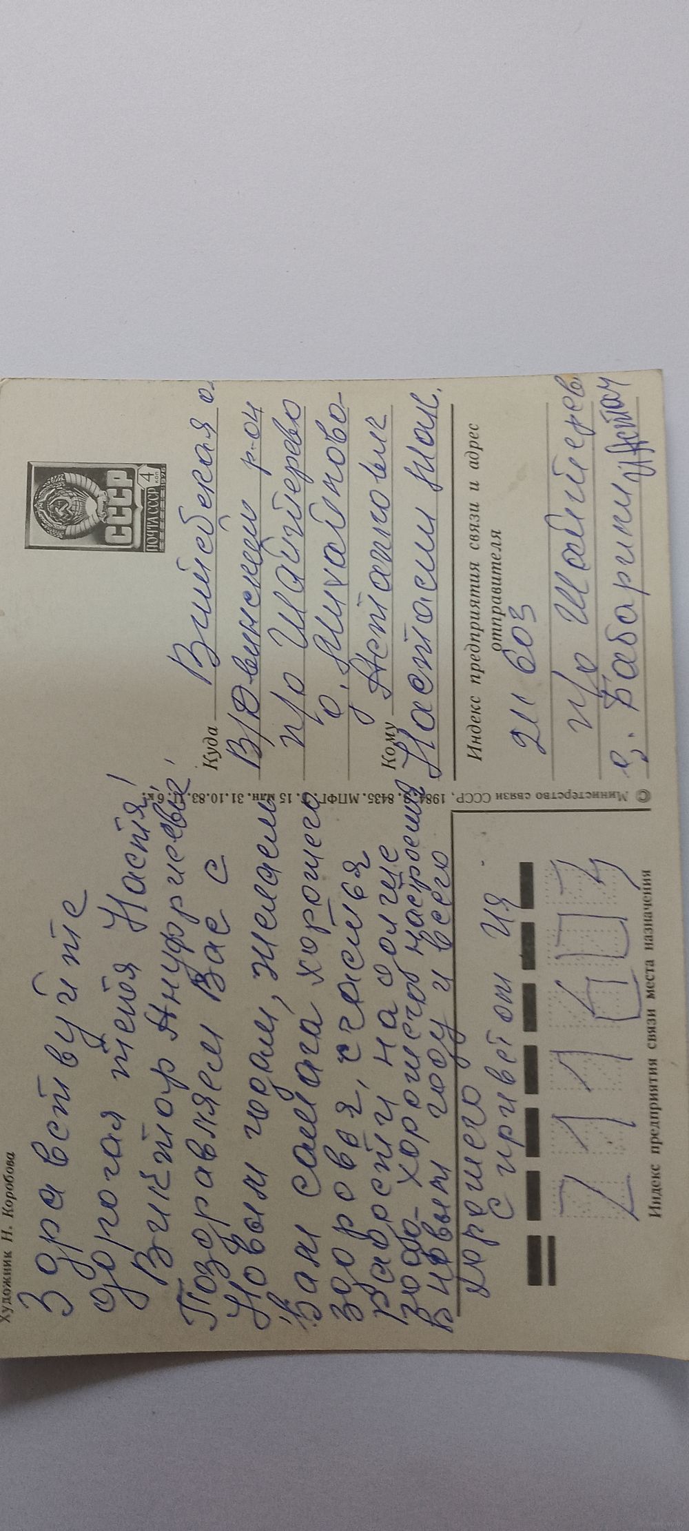 С новым годом! Н. Коробова 1984г. Подписана