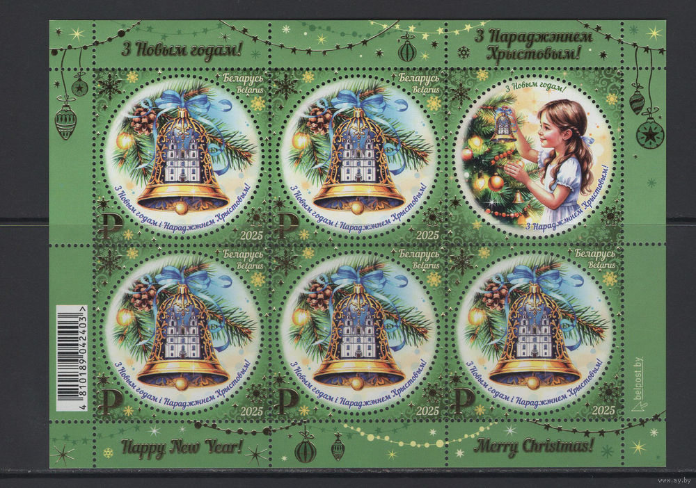 С Новым годом! С Рождеством Христовым! Беларусь 2025 Малый лист