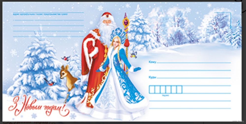 С Новым годом! Снегурочка и Дед Мороз. Открытка+ конверт