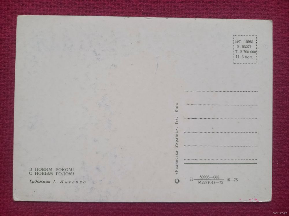 С Новым Годом! Украинская открытка. Лисенко 1975 г. Чистая.