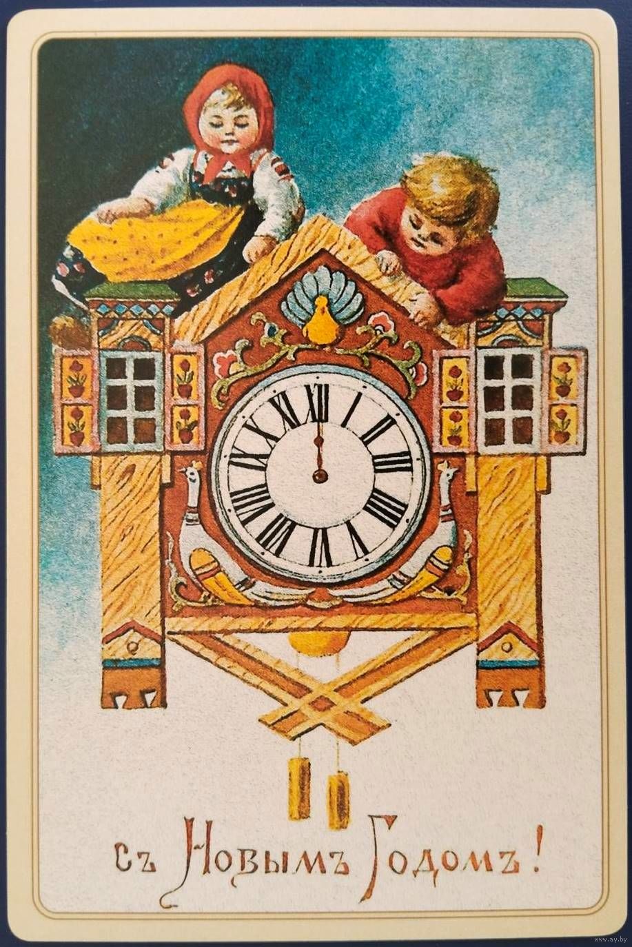 С Новым годом! Восстановлено с литографии. Россия. 2017 г.