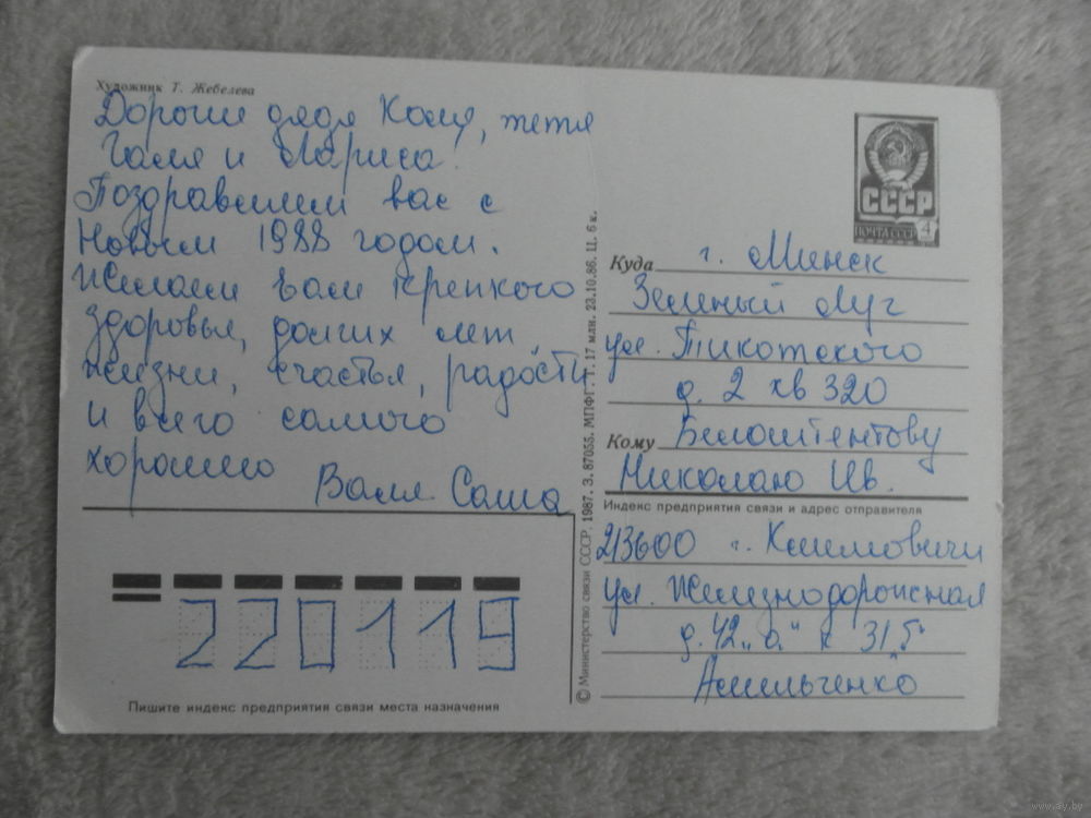 С Новым Годом! Жебелева 1987 г. Подписана.