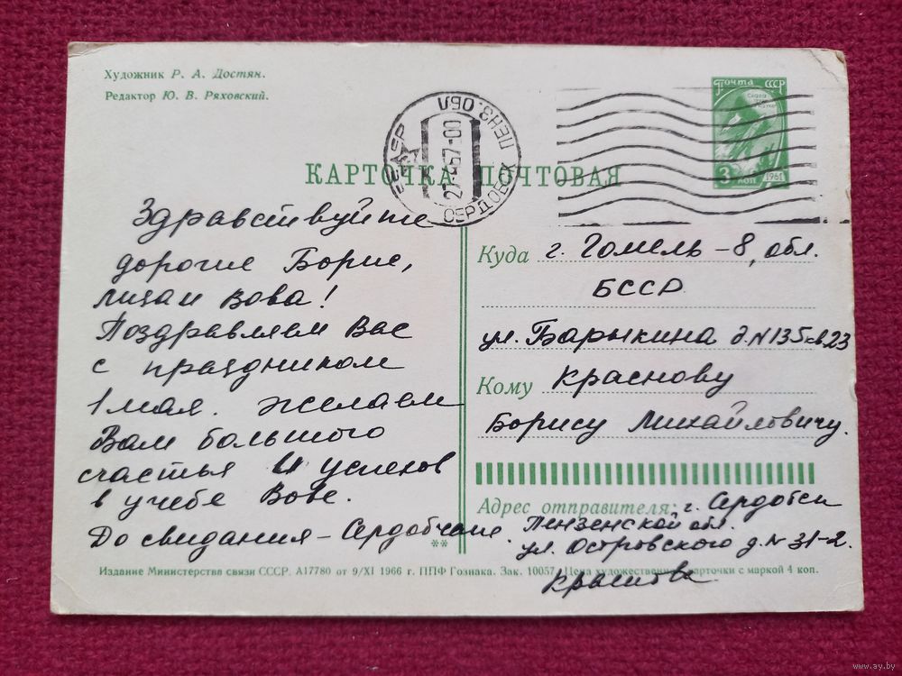 С Праздником! Достян 1966 г.