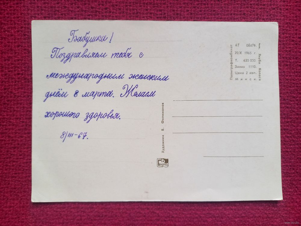 С Праздником, Мама! Белорусская открытка. Филимонов 1965 г.