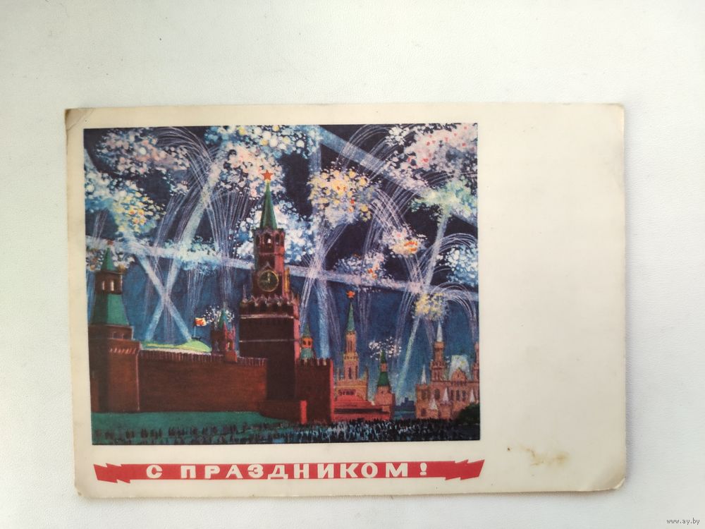 С праздником! Подписанная. 1966 года. Лебедев. 1583.