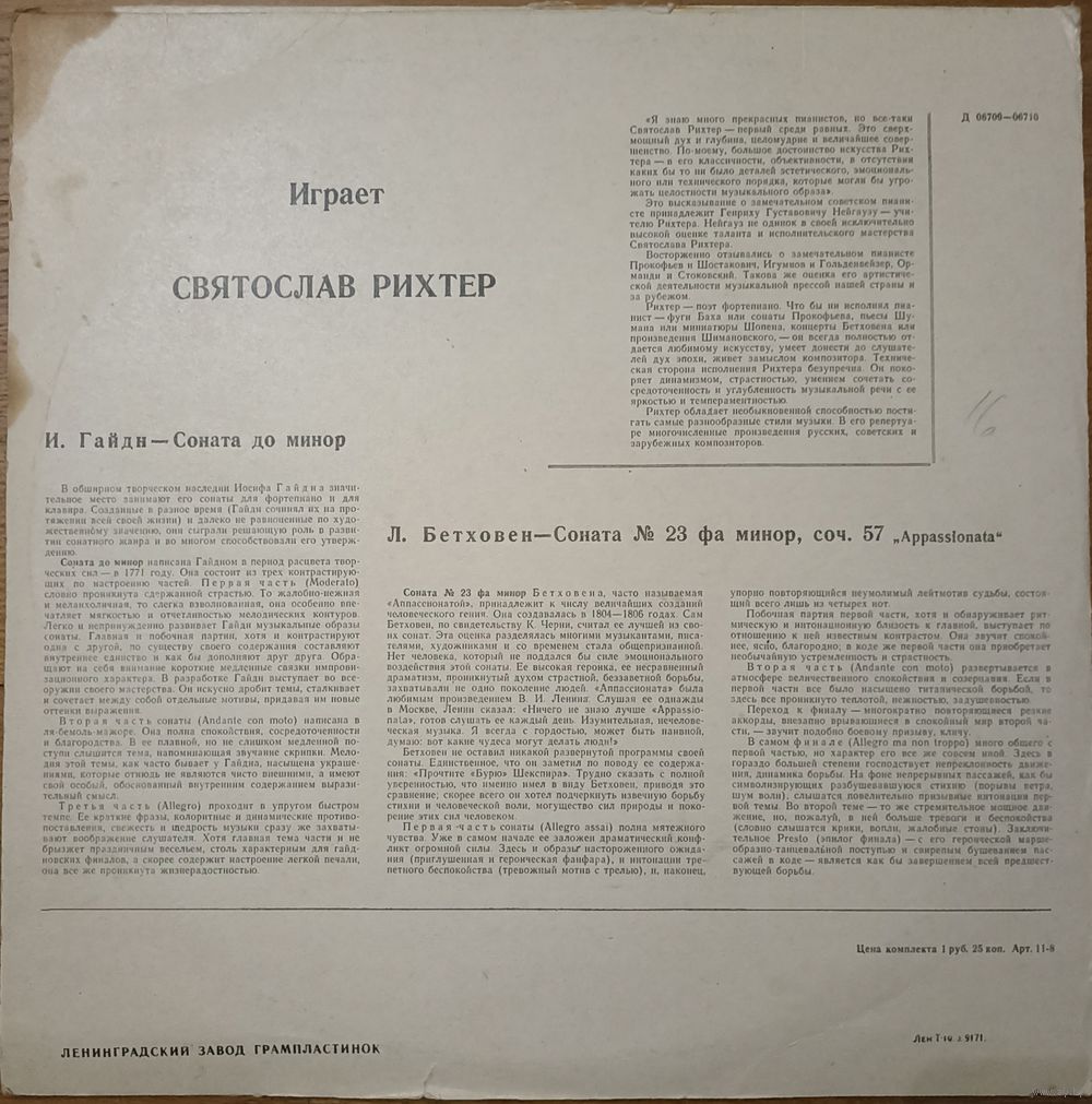 С.Рихтер, Л.Бетховен – Играет Святослав Рихтер - И. Гайдн. Соната До Минор / Л. Бетховен. 23-я Соната Фа Минор, Соч. 57 Аппассионата.
