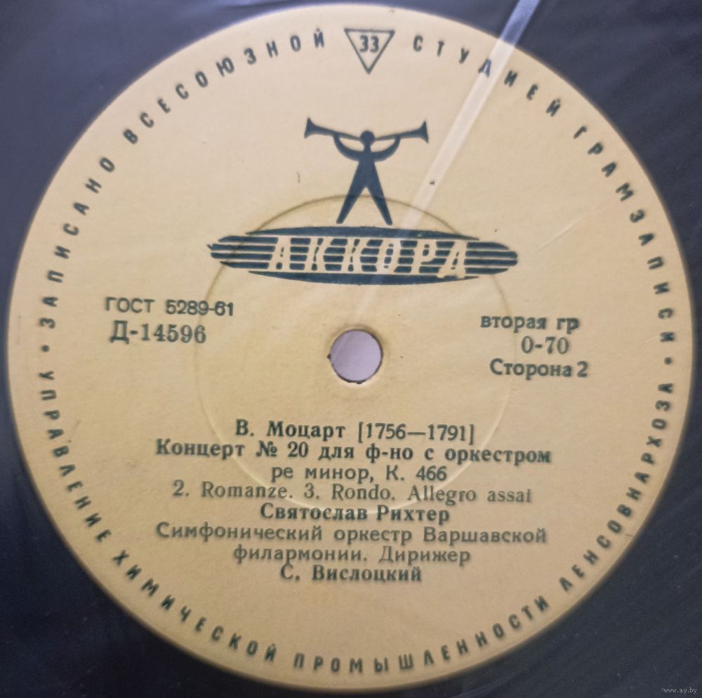 С. Рихтер - В.Ф. Моцарт. концерт No. 20 (10")