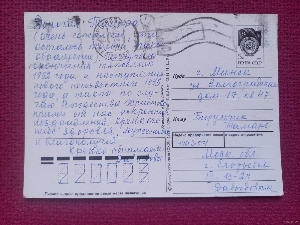 С Рождеством! Куртенко 1992 г. Кр1.
